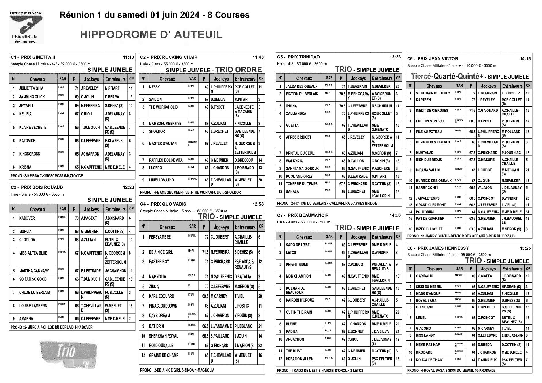 Pronostics & Arrivées