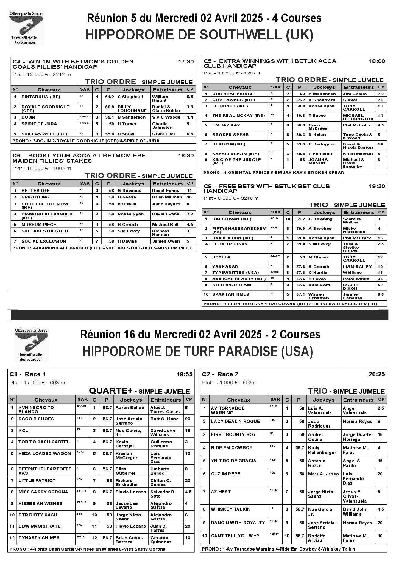 Pronostics & Arrivées