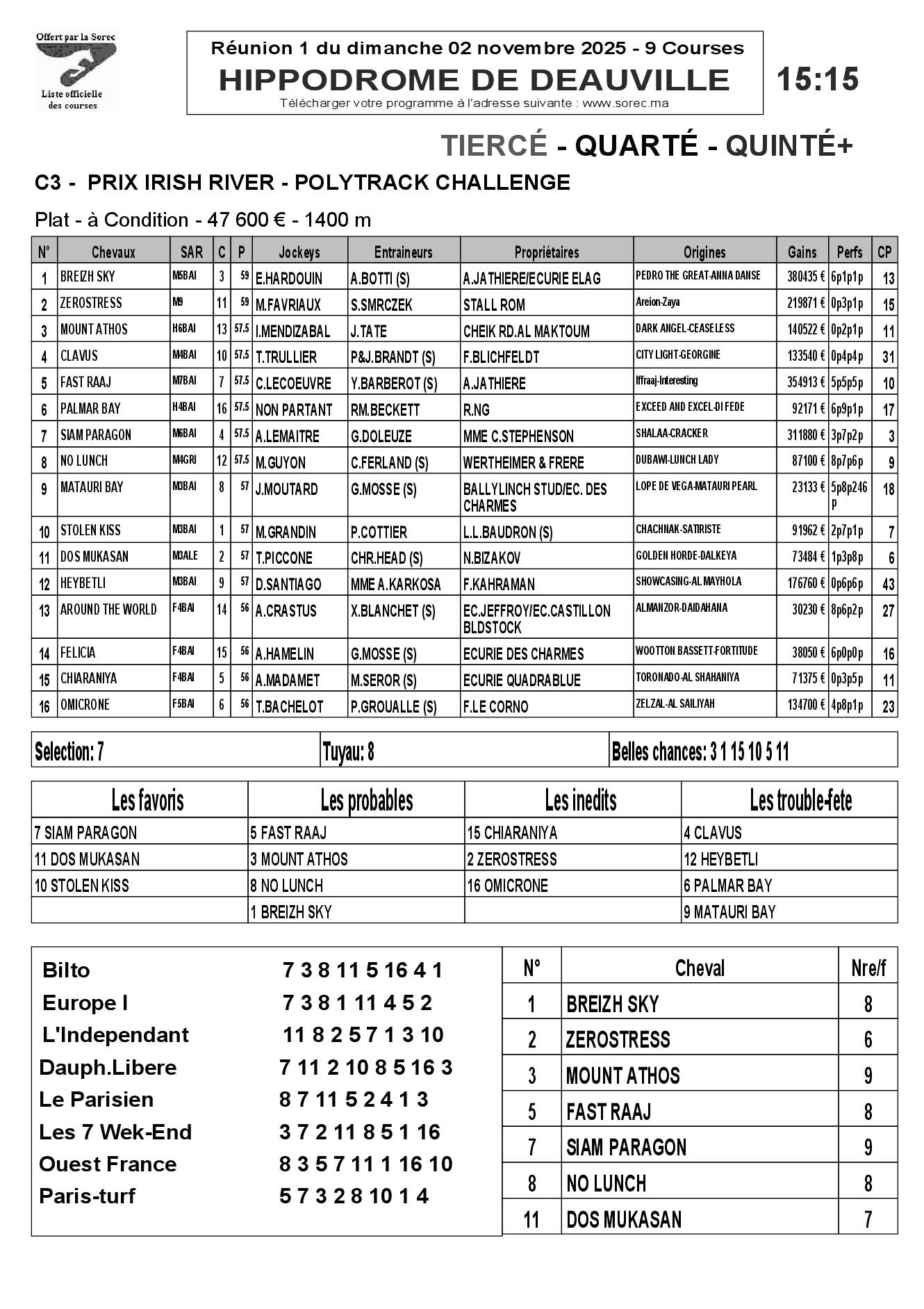 Pronostics & Arrivées
