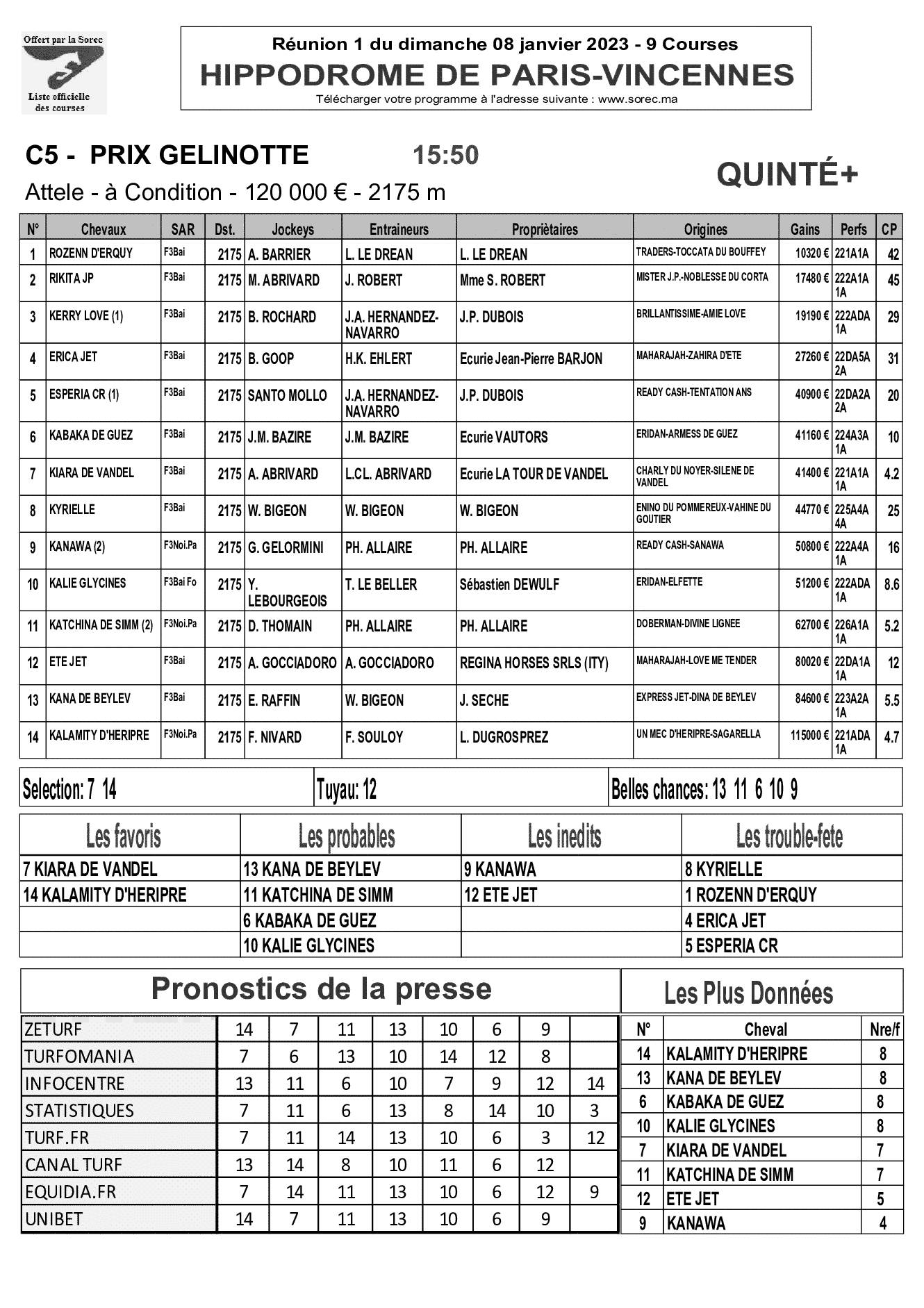 Pronostics & Arrivées
