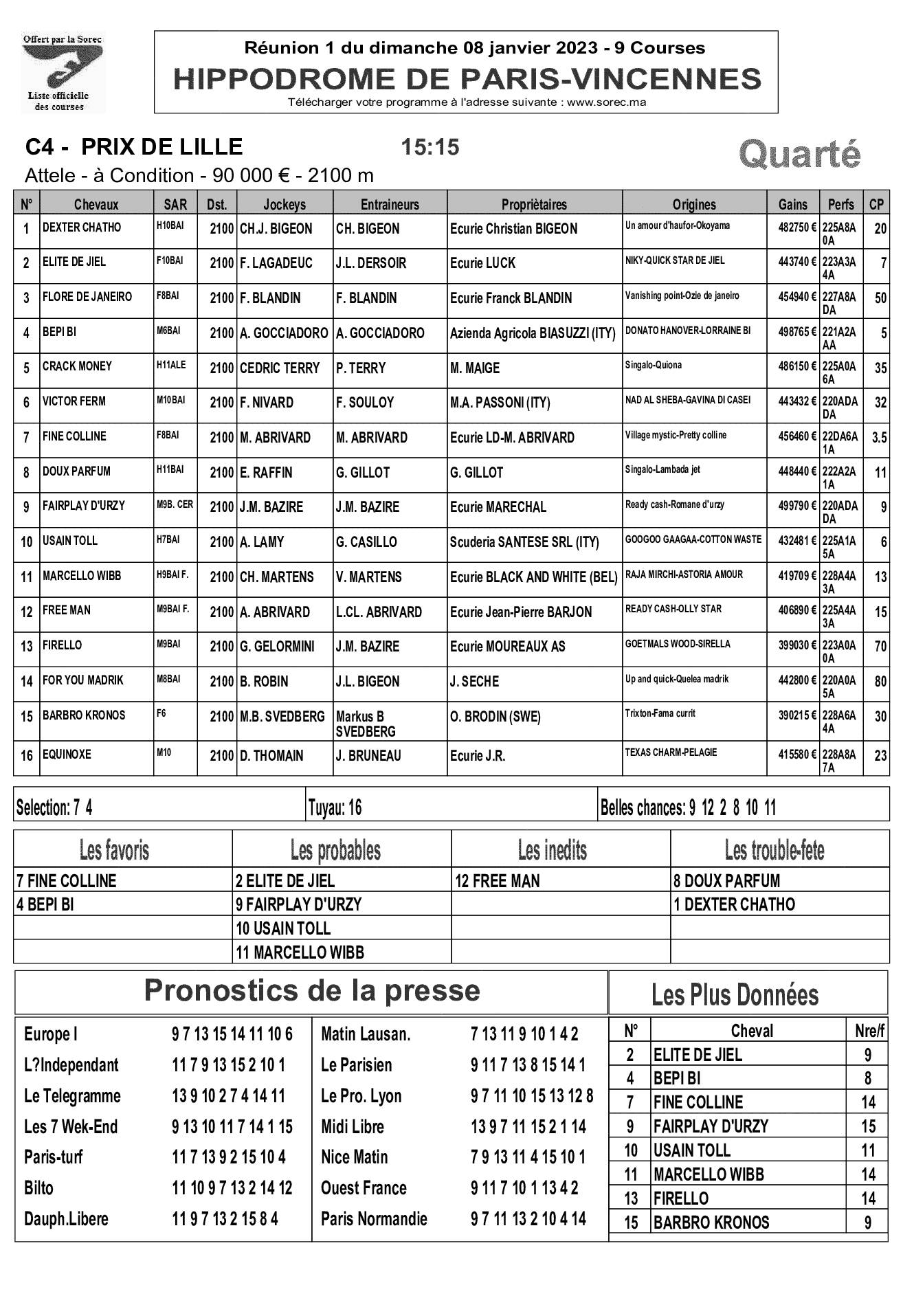 Pronostics & Arrivées