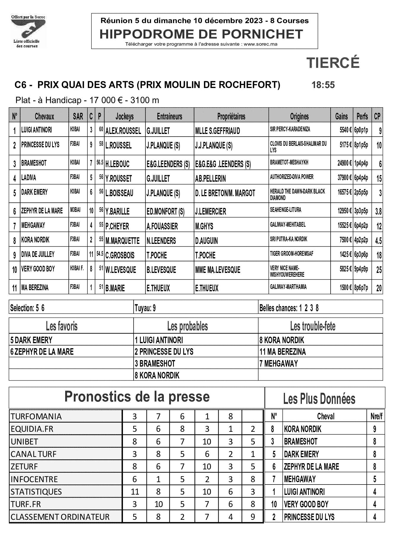 Pronostics & Arrivées