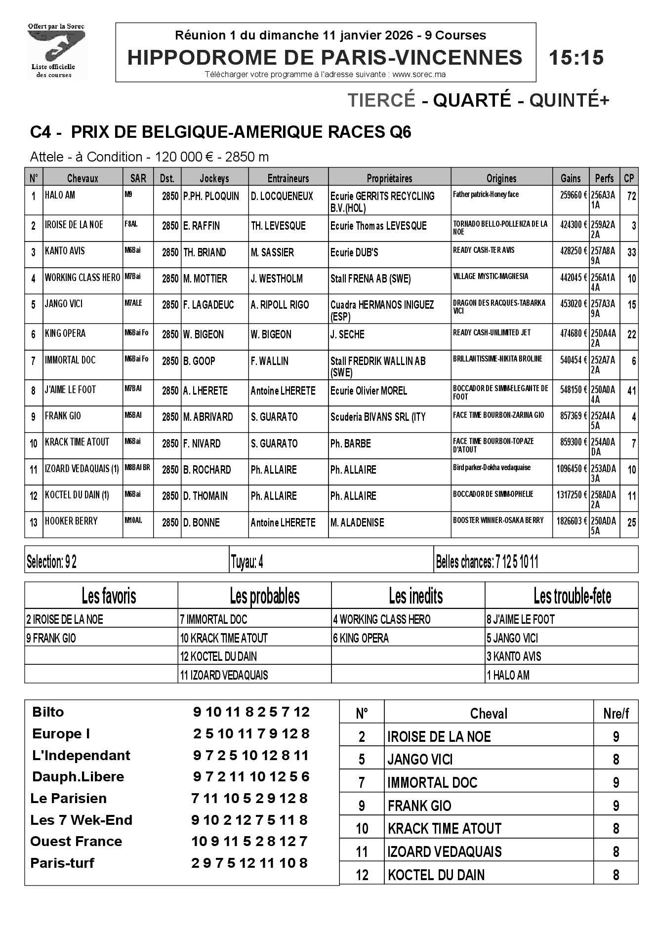 Pronostics & Arrivées