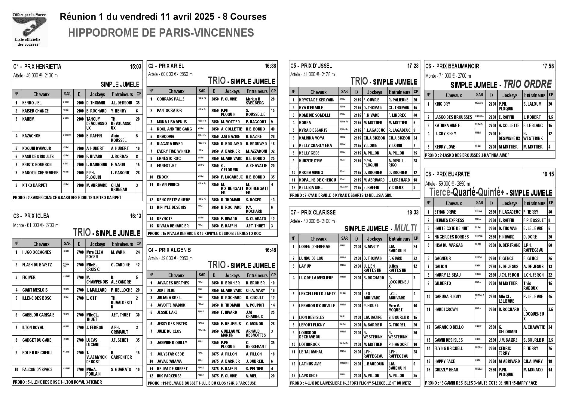 Pronostics & Arrivées