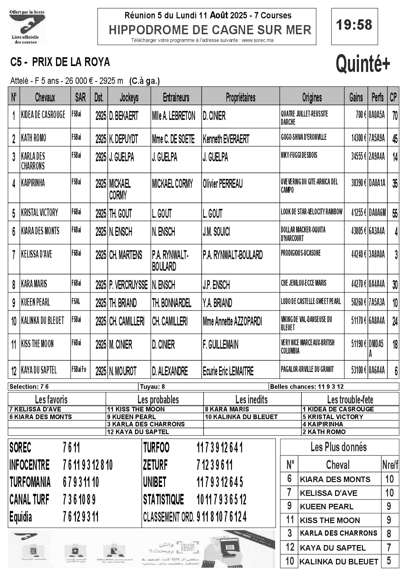 Pronostics & Arrivées
