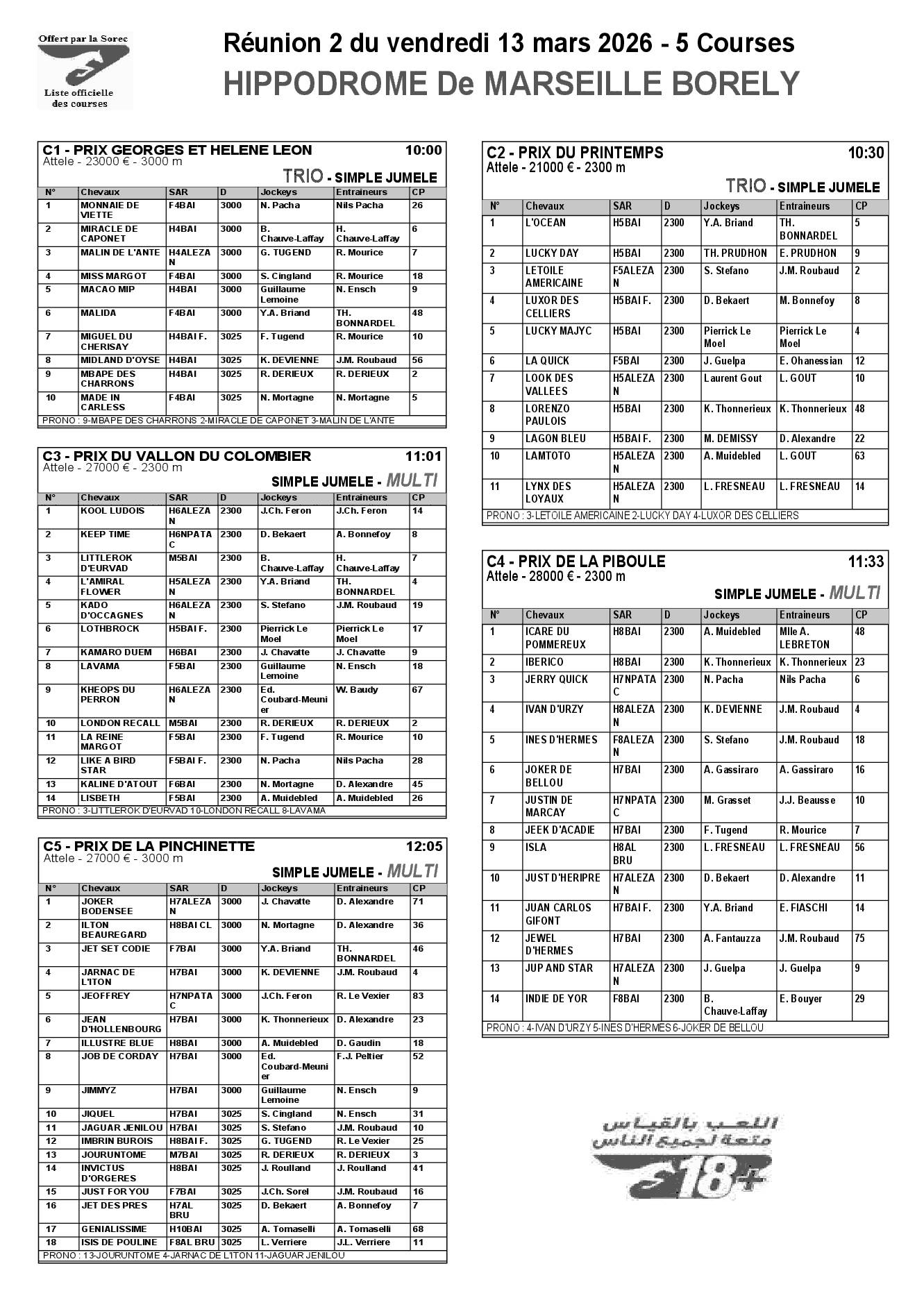 Pronostics & Arrivées