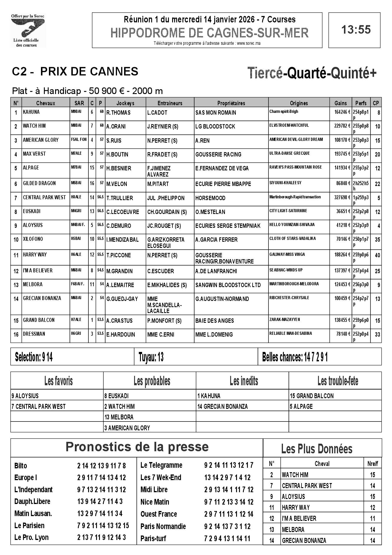 Pronostics & Arrivées