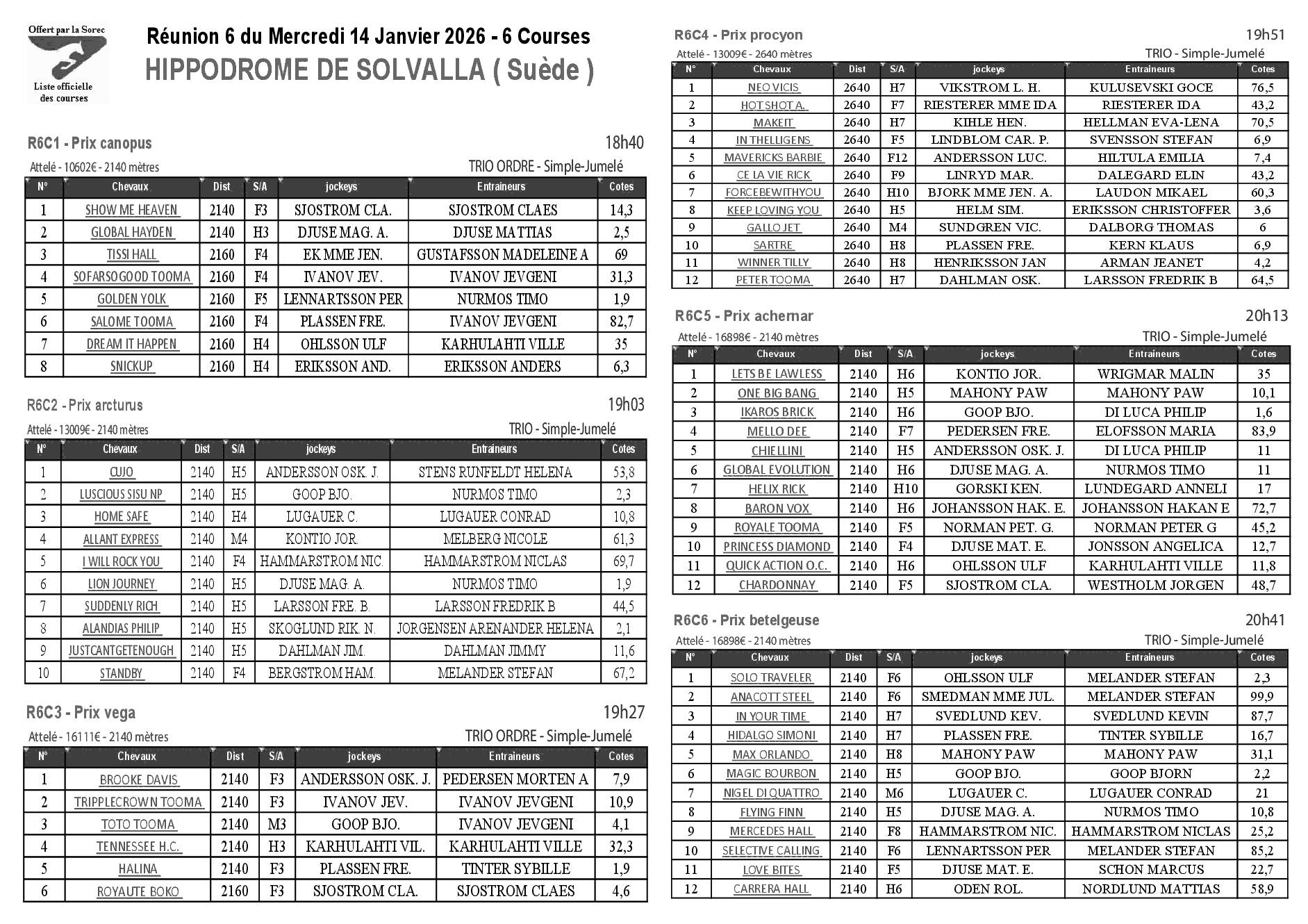 Pronostics & Arrivées