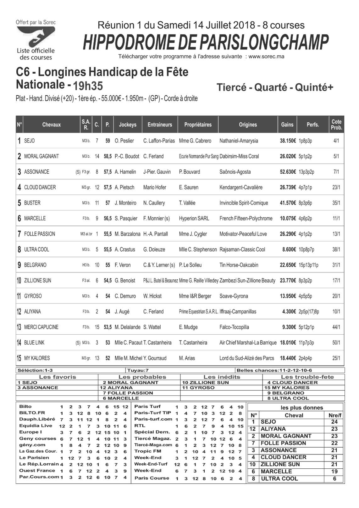 Pronostics & Arrivées