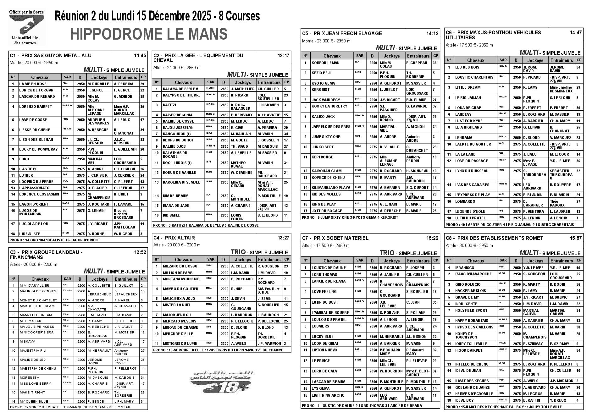 Pronostics & Arrivées