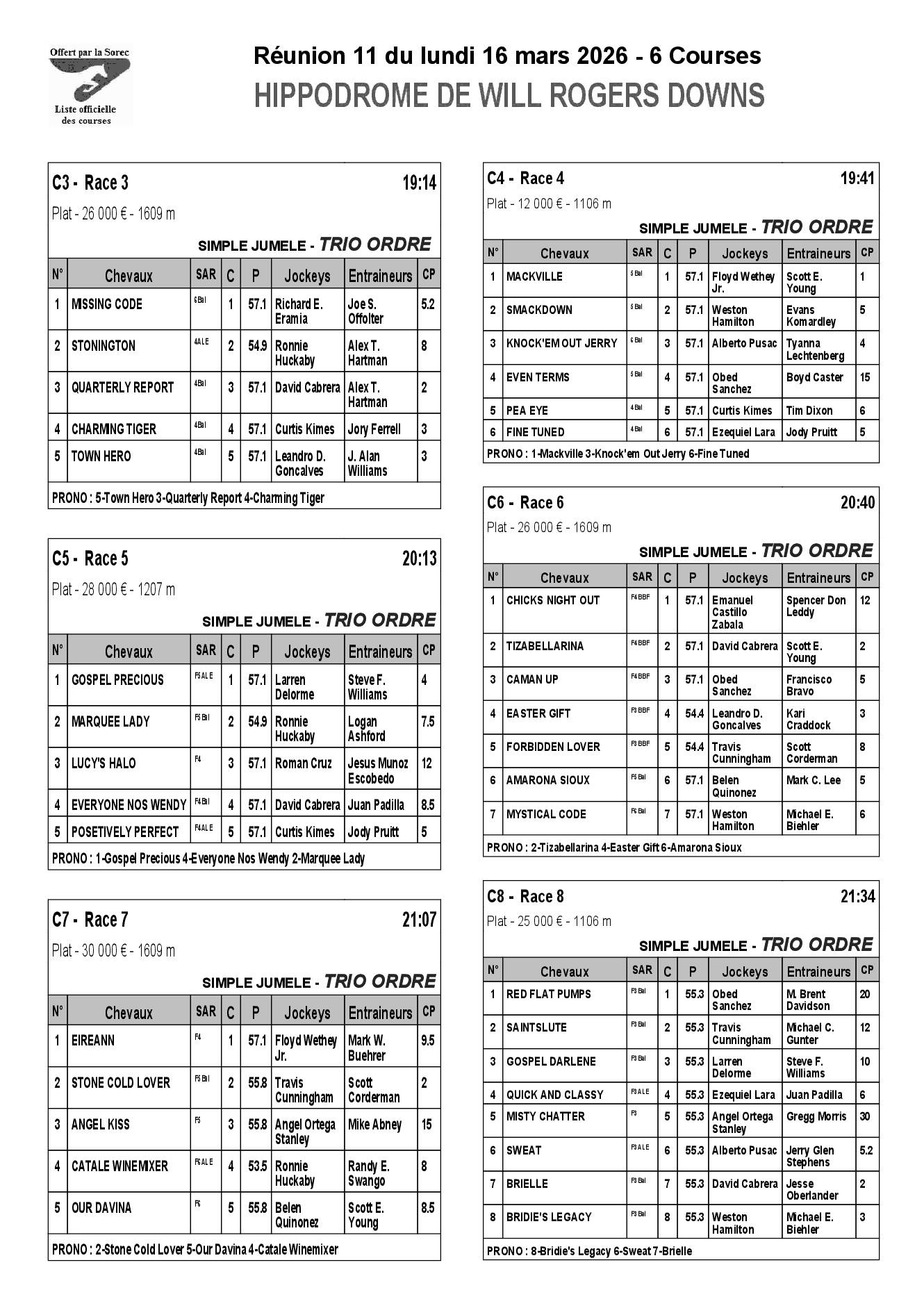 Pronostics & Arrivées