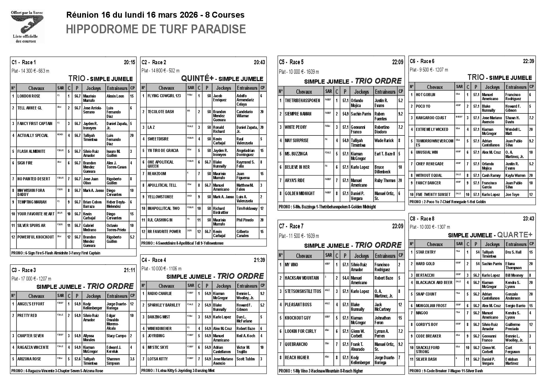 Pronostics & Arrivées