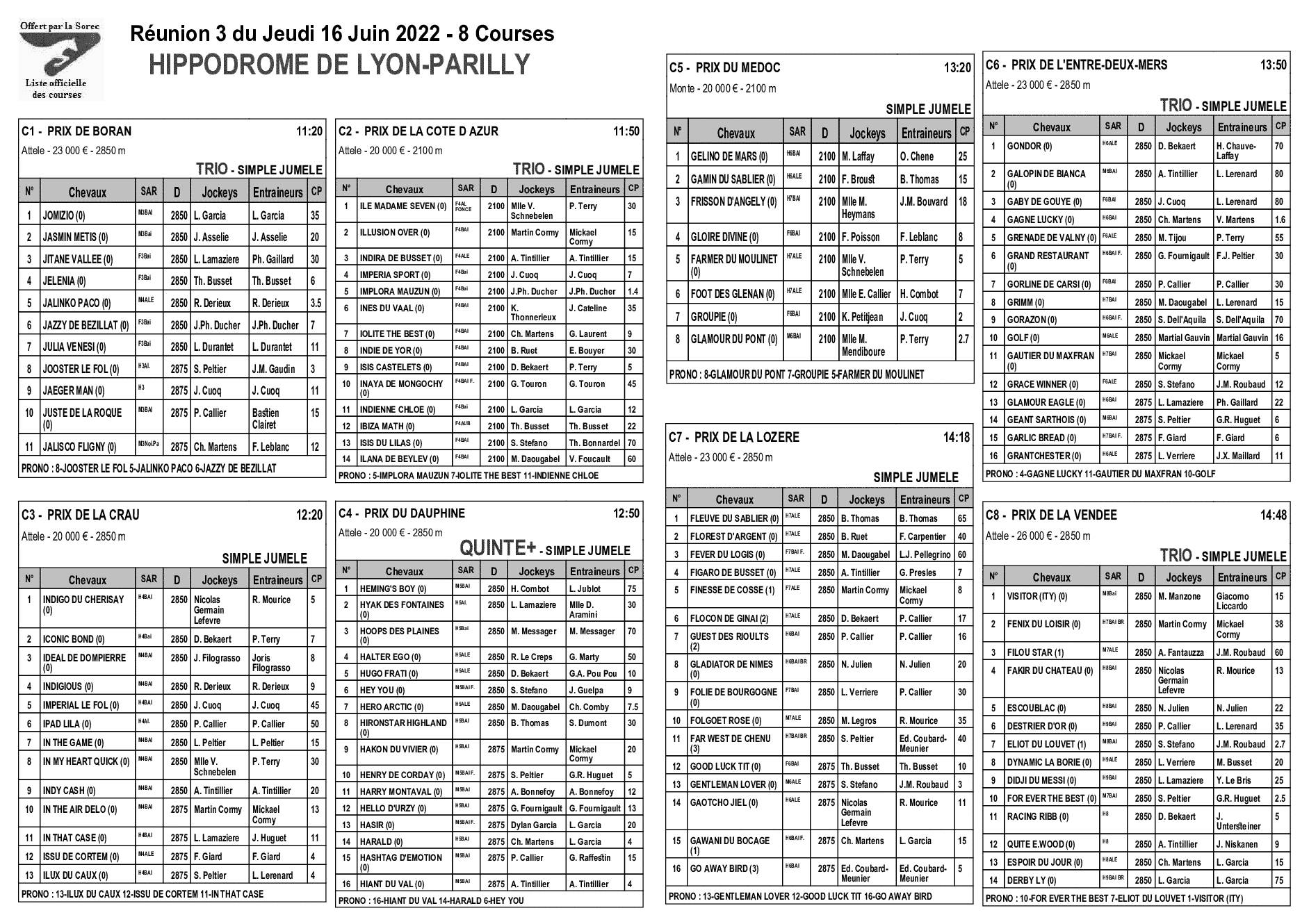 Pronostics & Arrivées