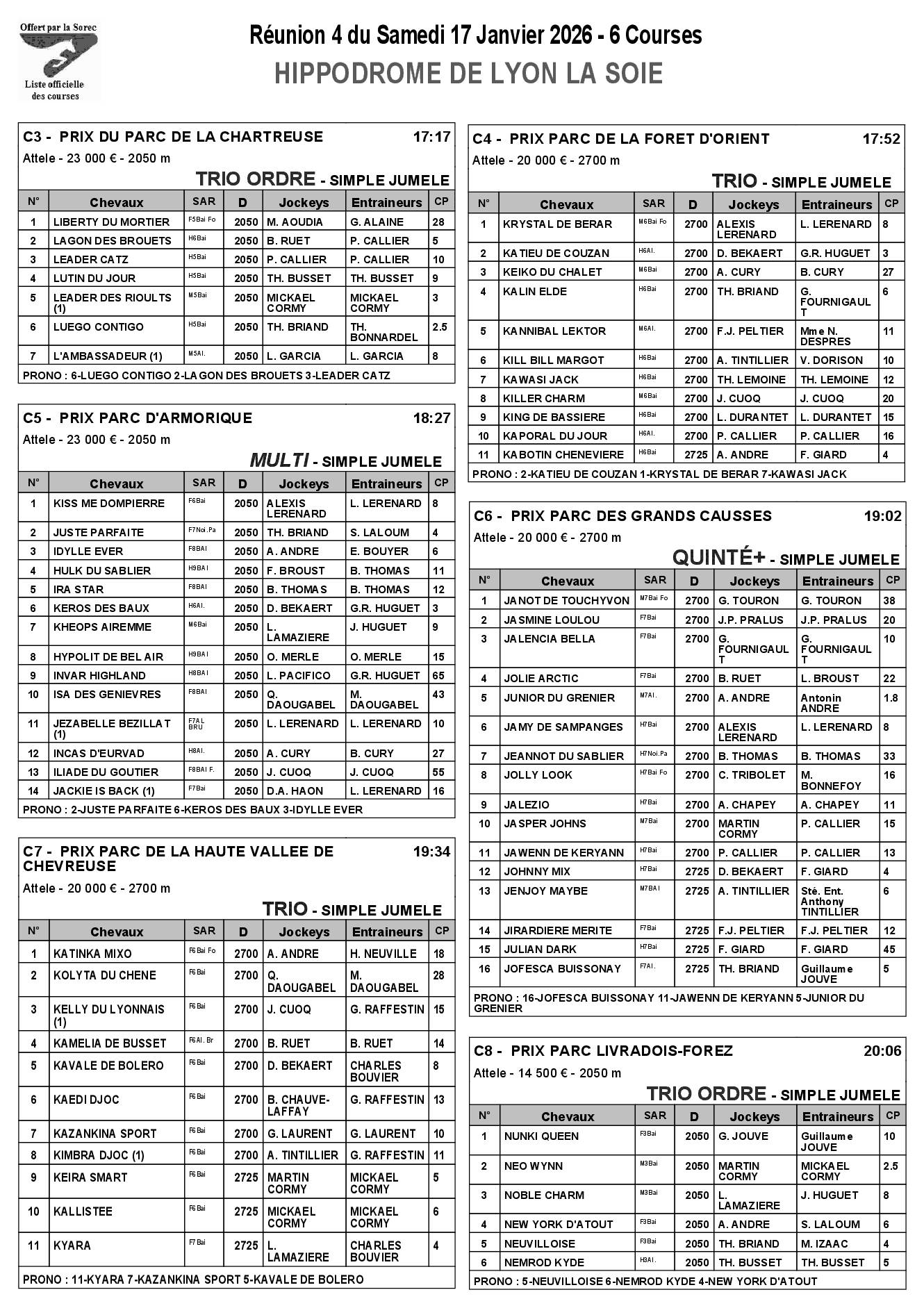 Pronostics & Arrivées