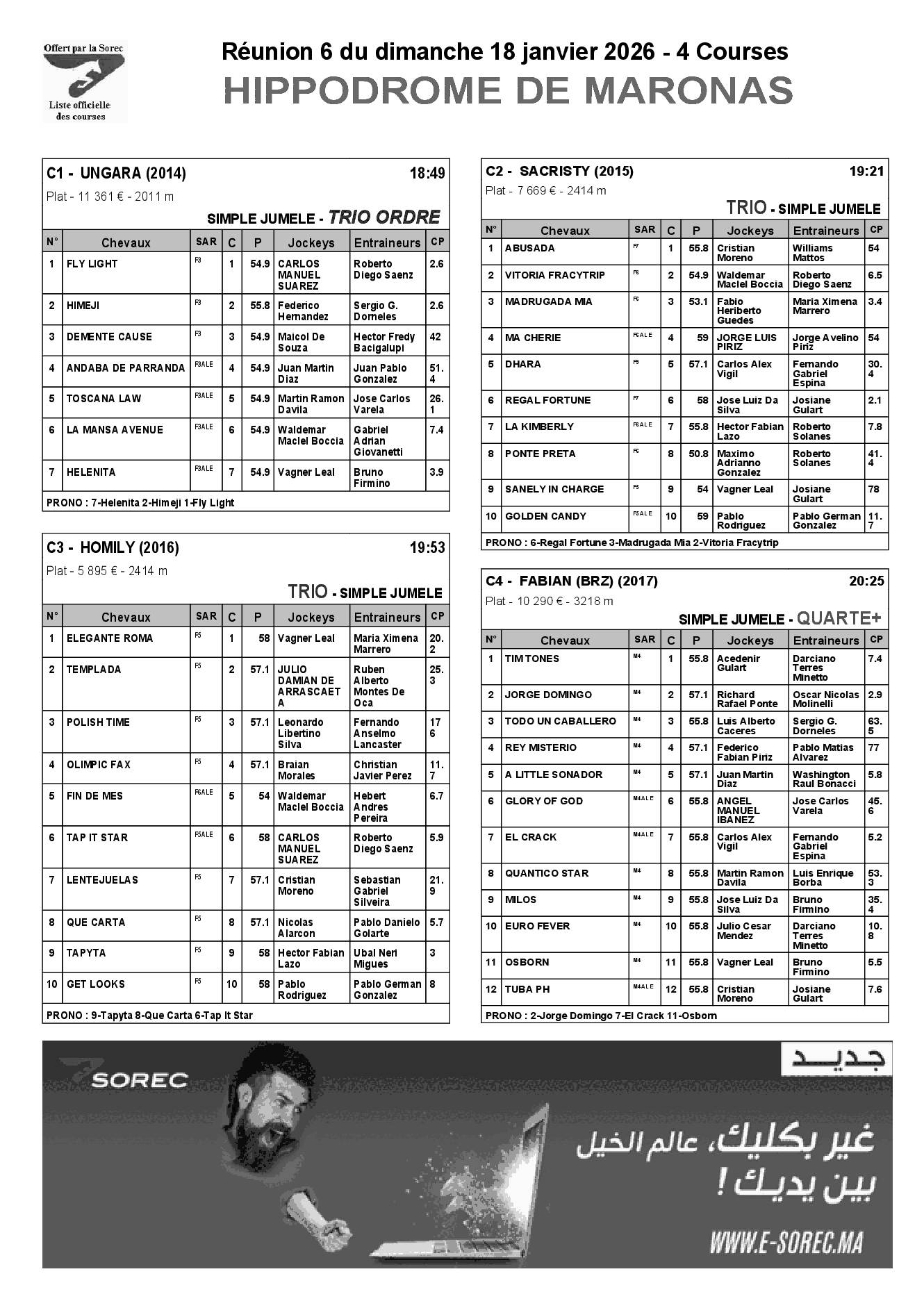 Pronostics & Arrivées