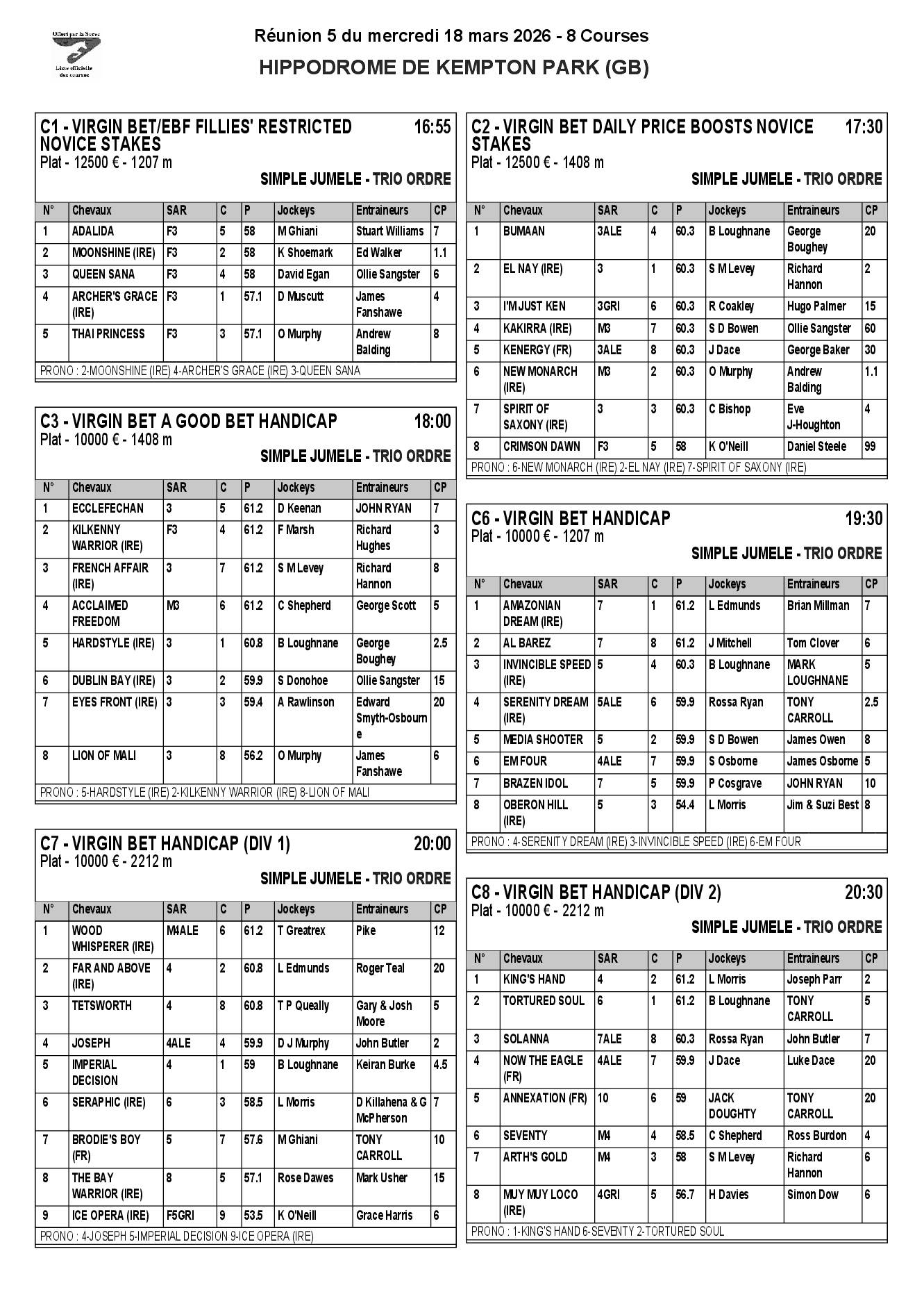 Pronostics & Arrivées