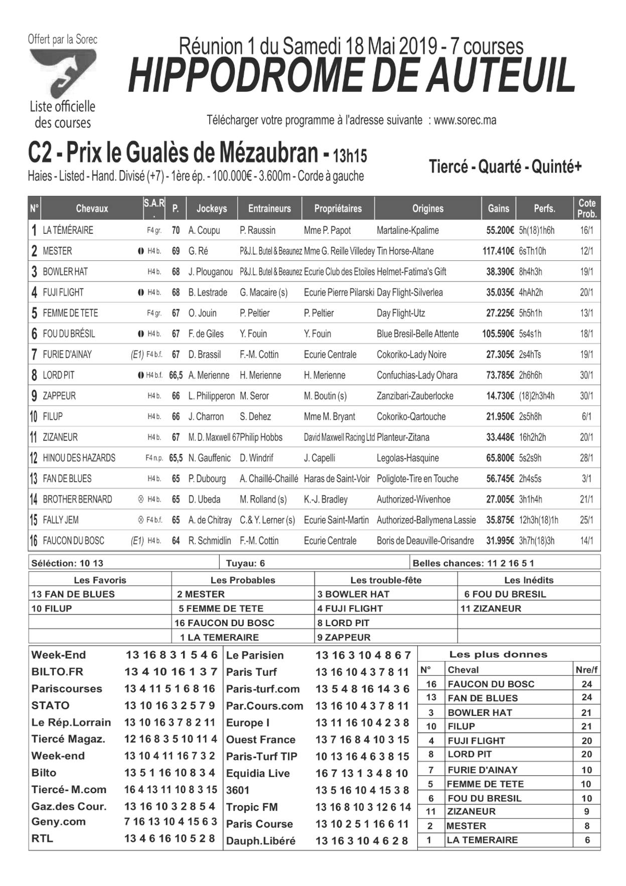 Pronostics & Arrivées