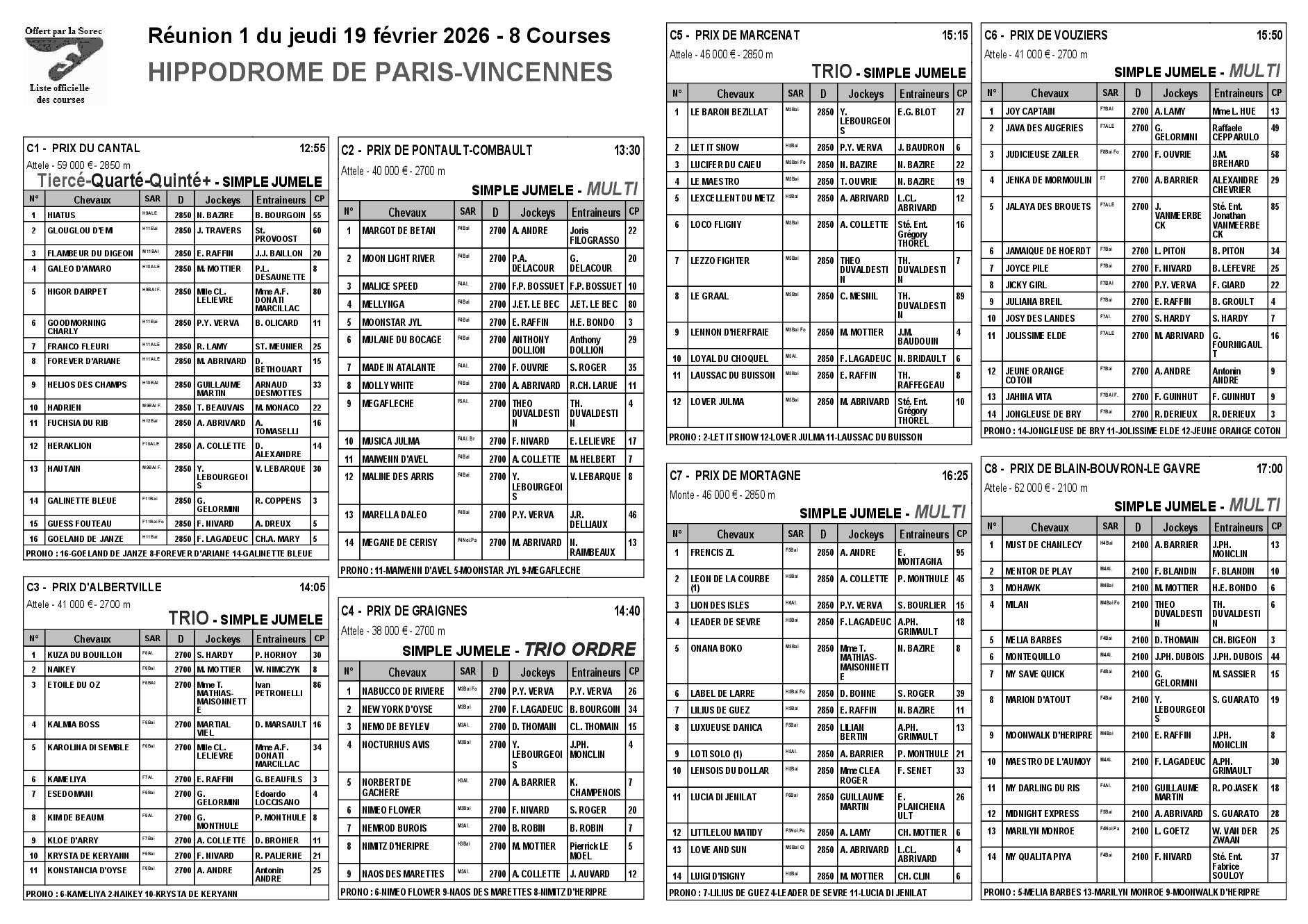 Pronostics & Arrivées