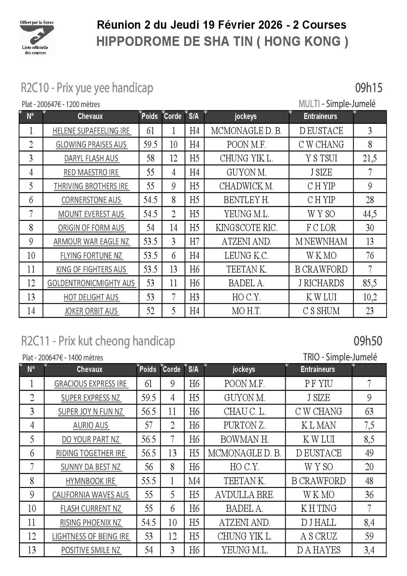 Pronostics & Arrivées