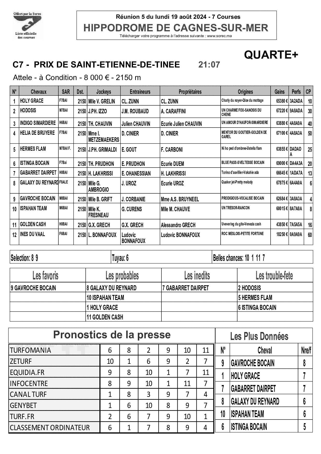 Pronostics & Arrivées