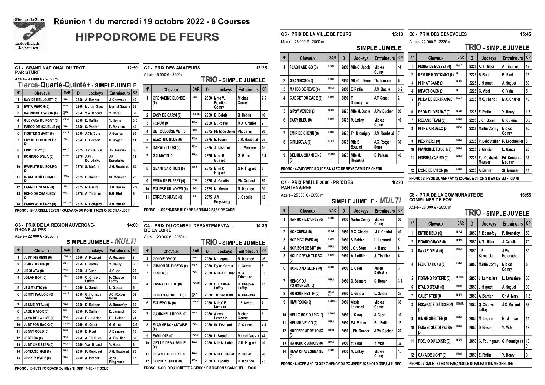 Pronostics & Arrivées