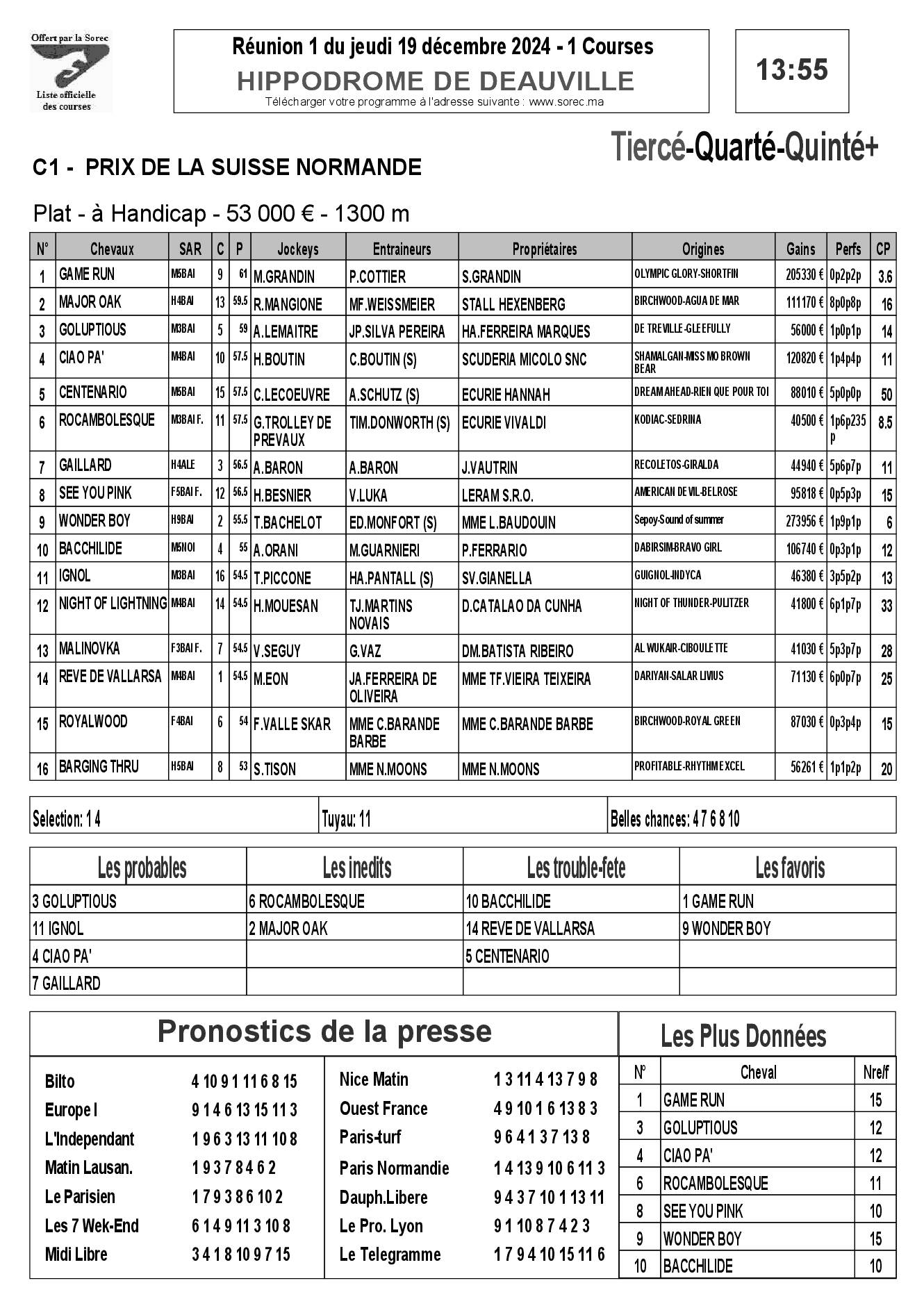 Pronostics & Arrivées