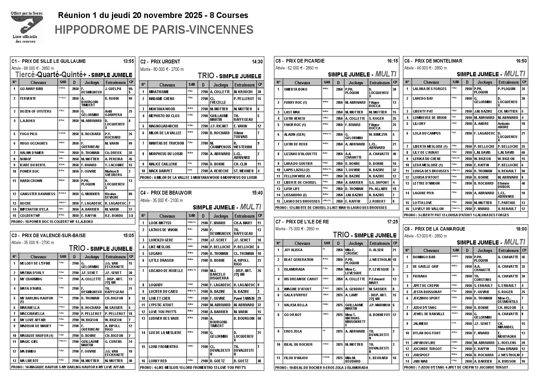 Pronostics & Arrivées