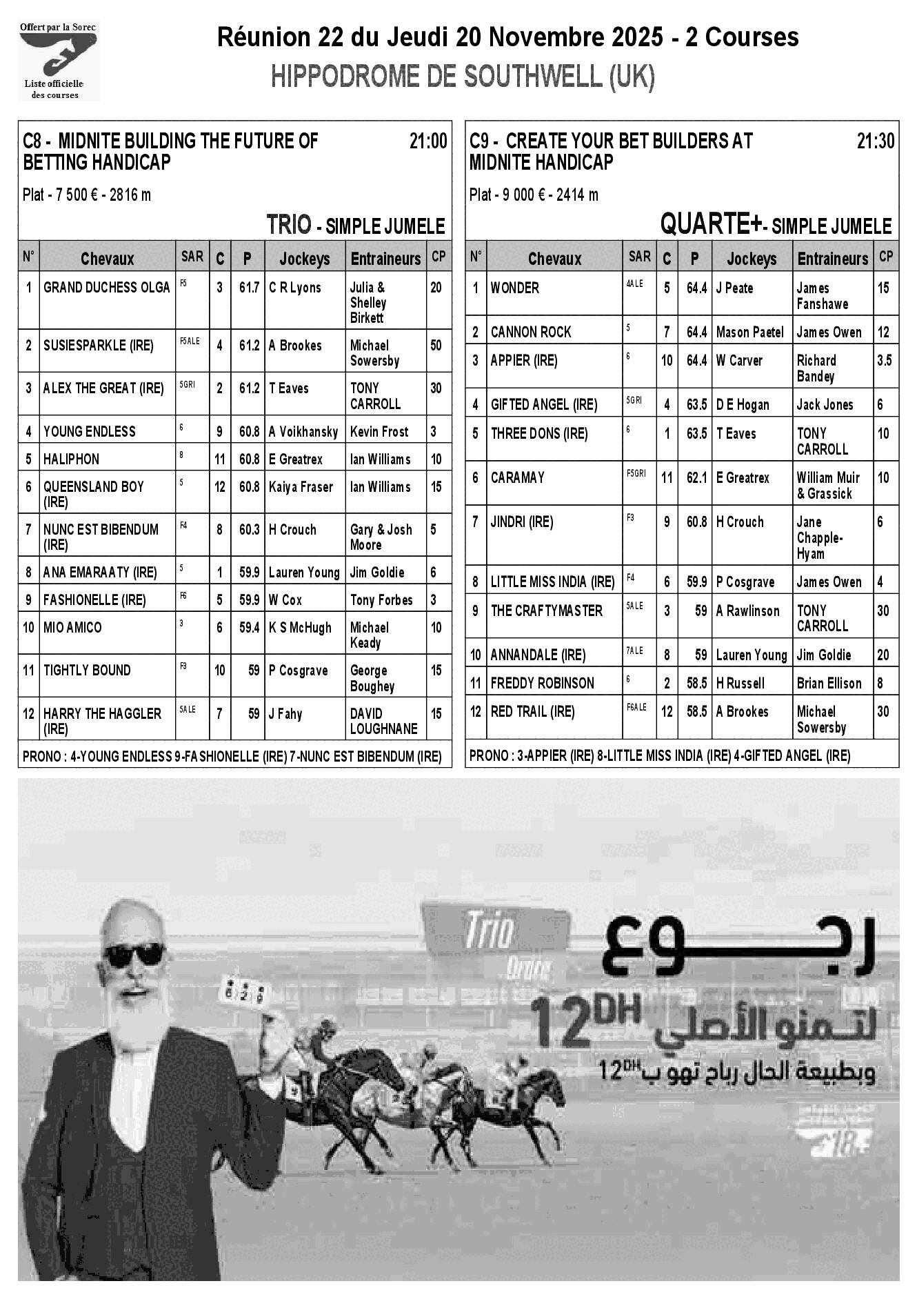 Pronostics & Arrivées