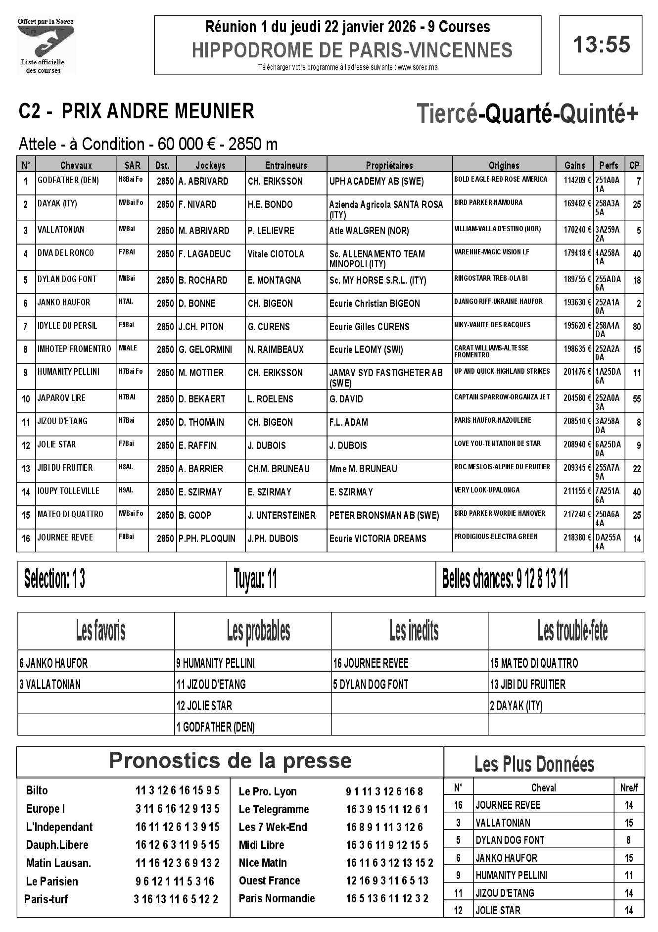 Pronostics & Arrivées