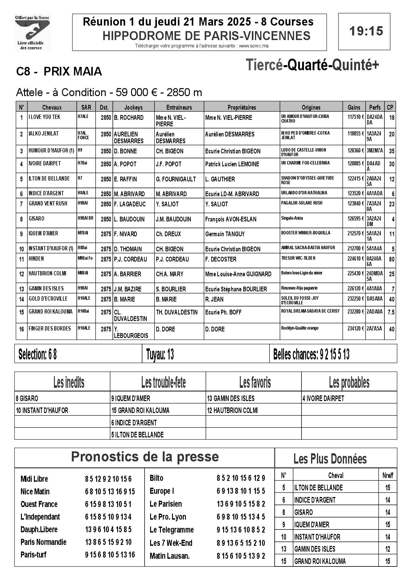 Pronostics & Arrivées