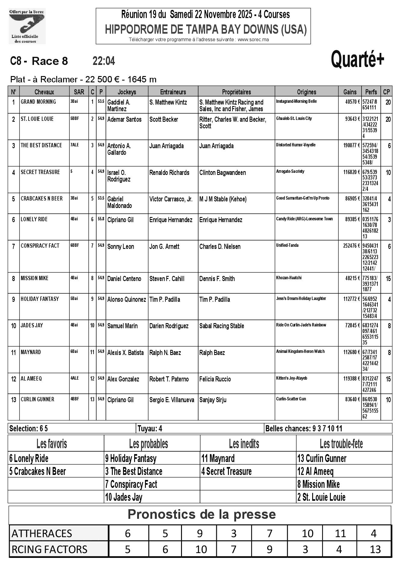 Pronostics & Arrivées