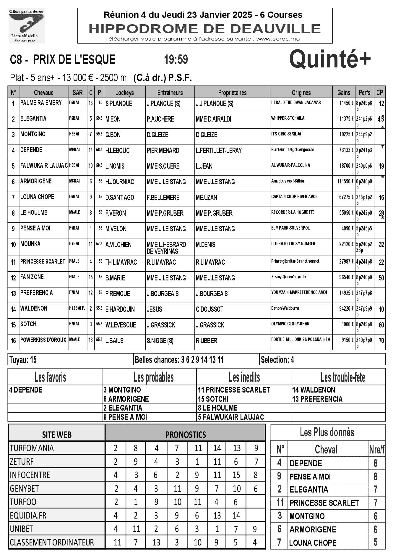 Pronostics & Arrivées