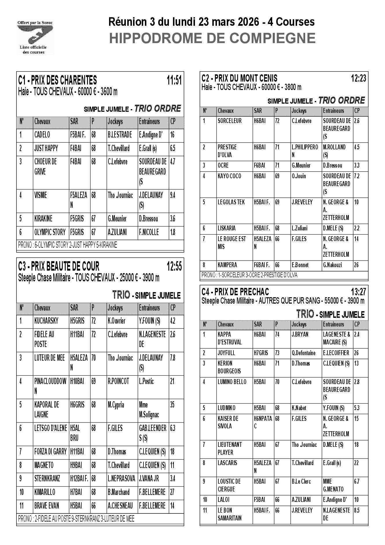 Pronostics & Arrivées