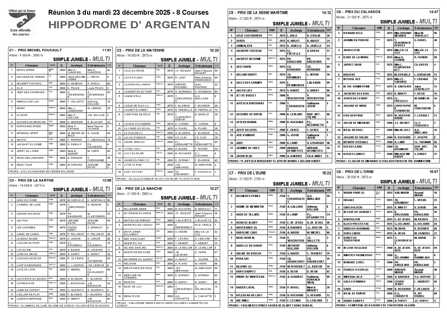 Pronostics & Arrivées