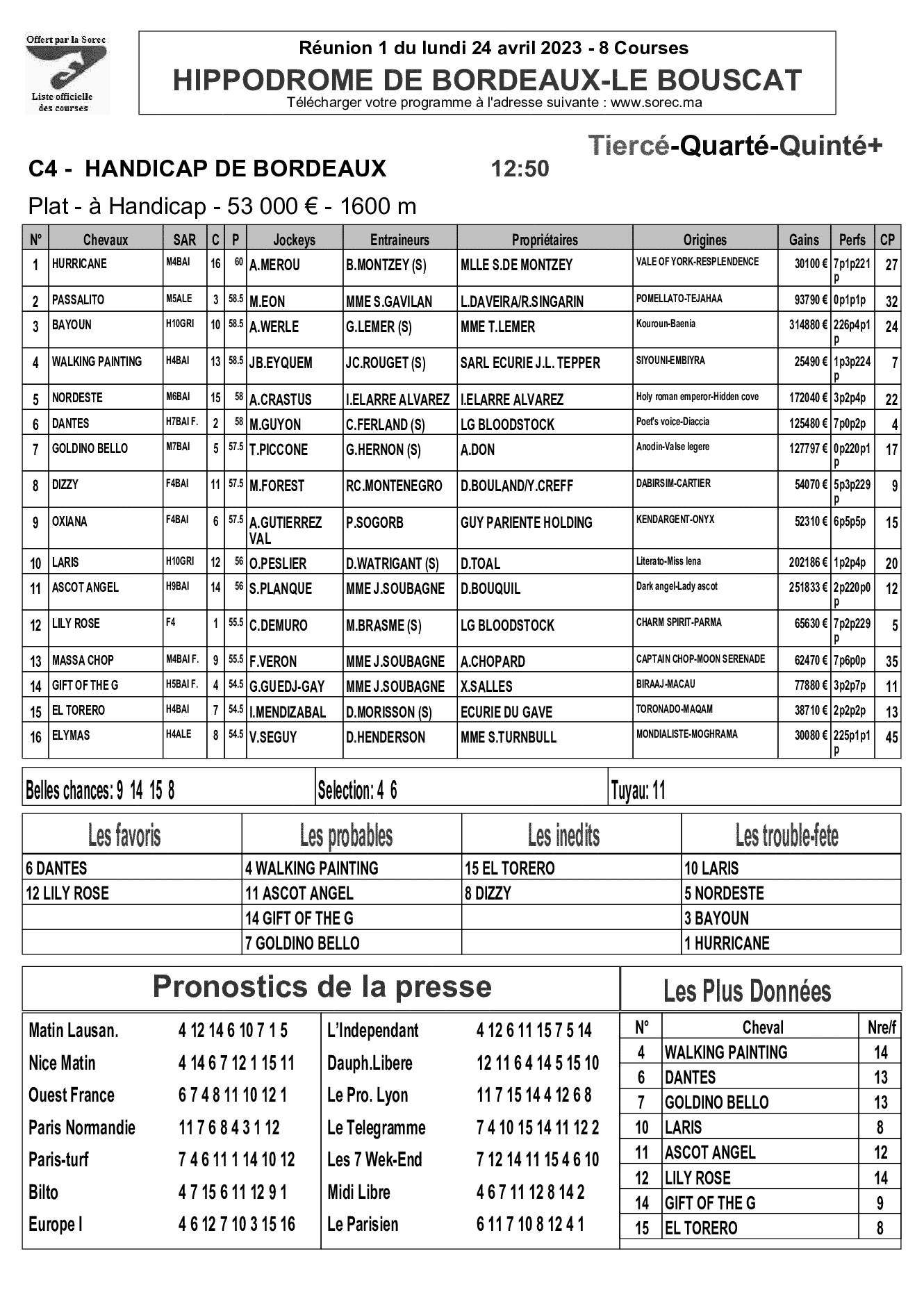 Pronostics & Arrivées