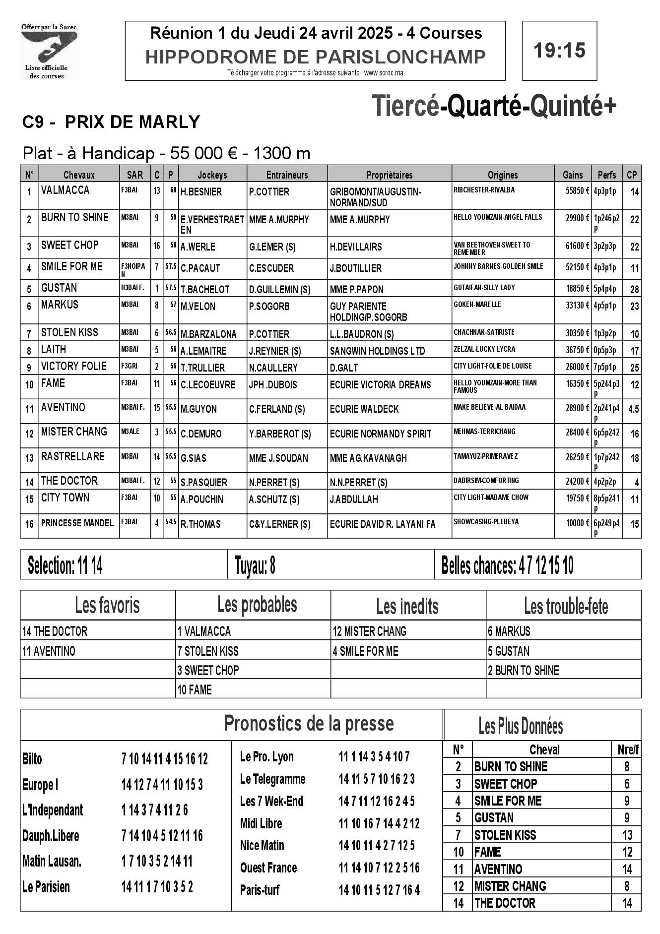 Pronostics & Arrivées