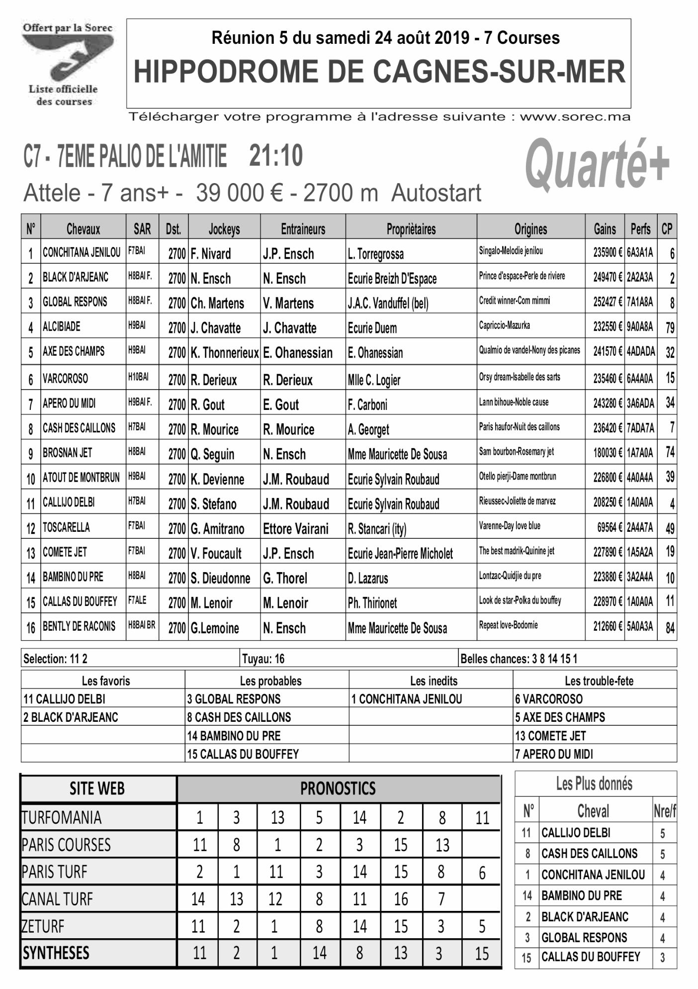 Pronostics & Arrivées