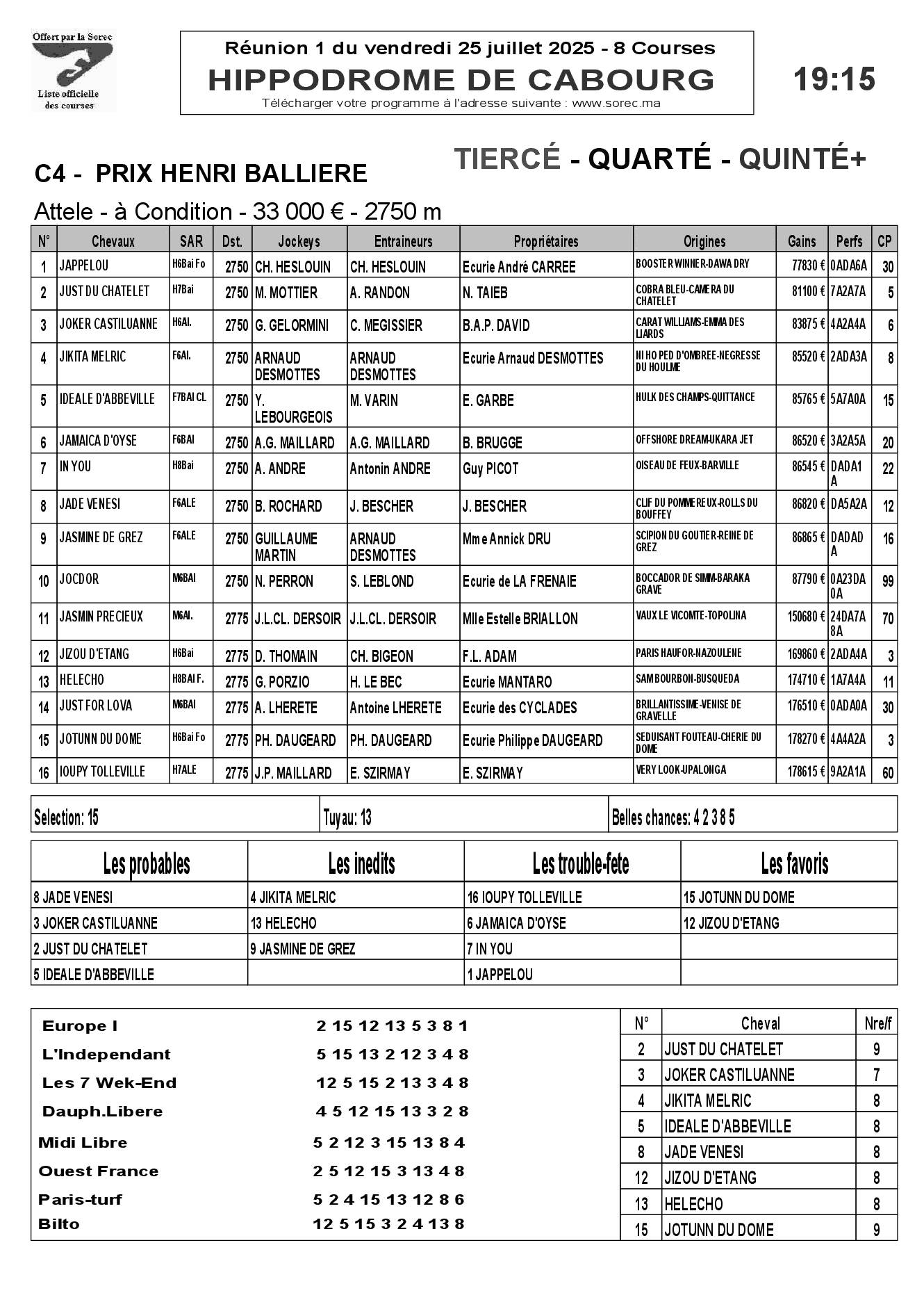 Pronostics & Arrivées