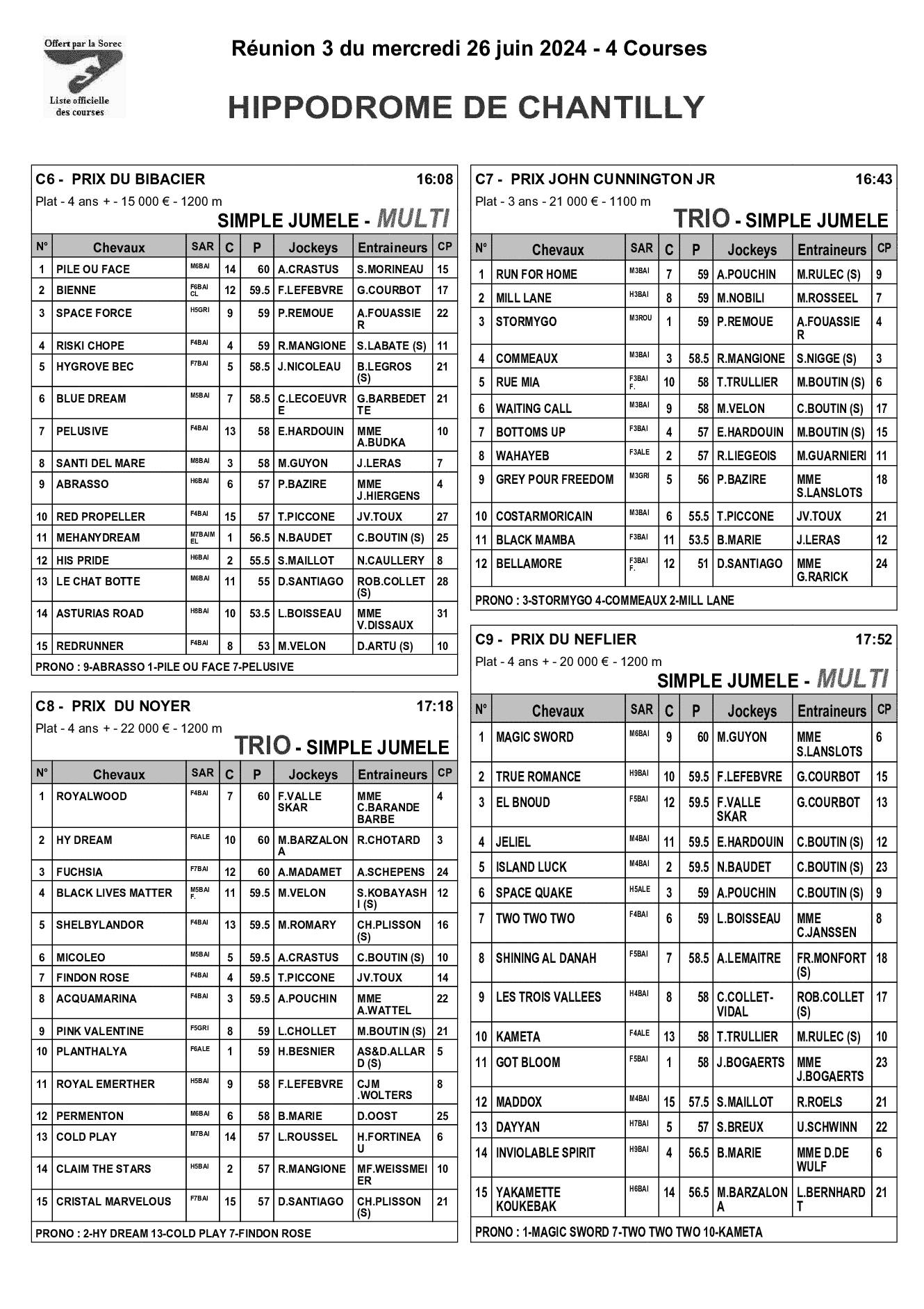 Pronostics & Arrivées