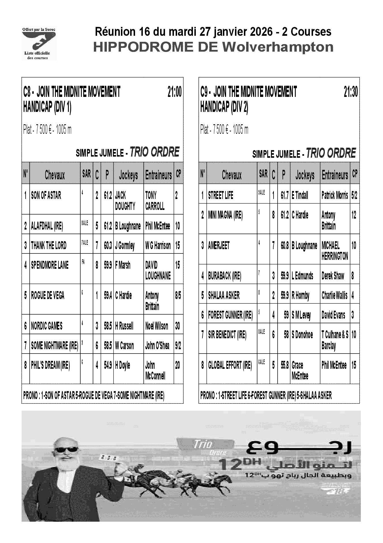 Pronostics & Arrivées