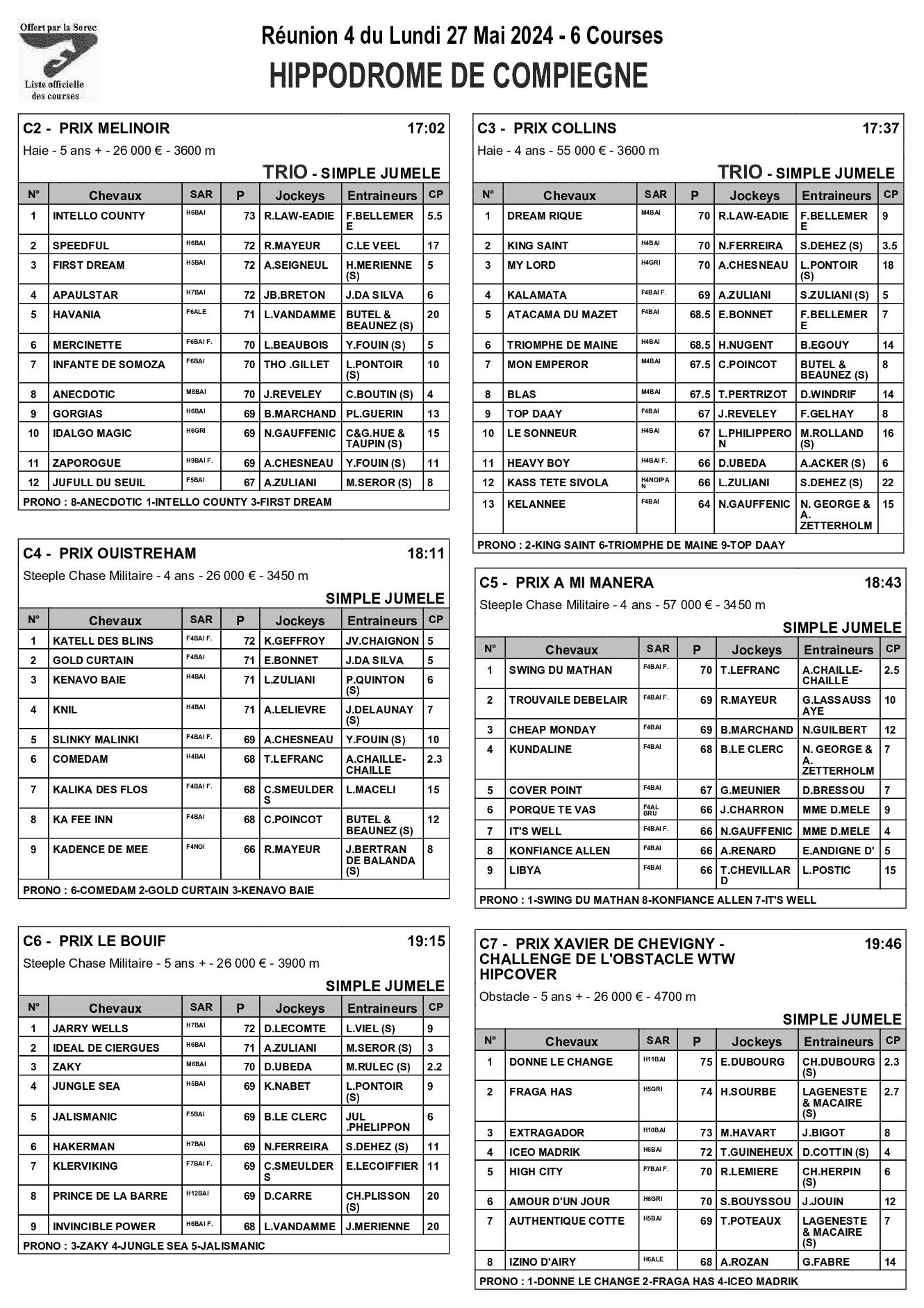 Pronostics & Arrivées