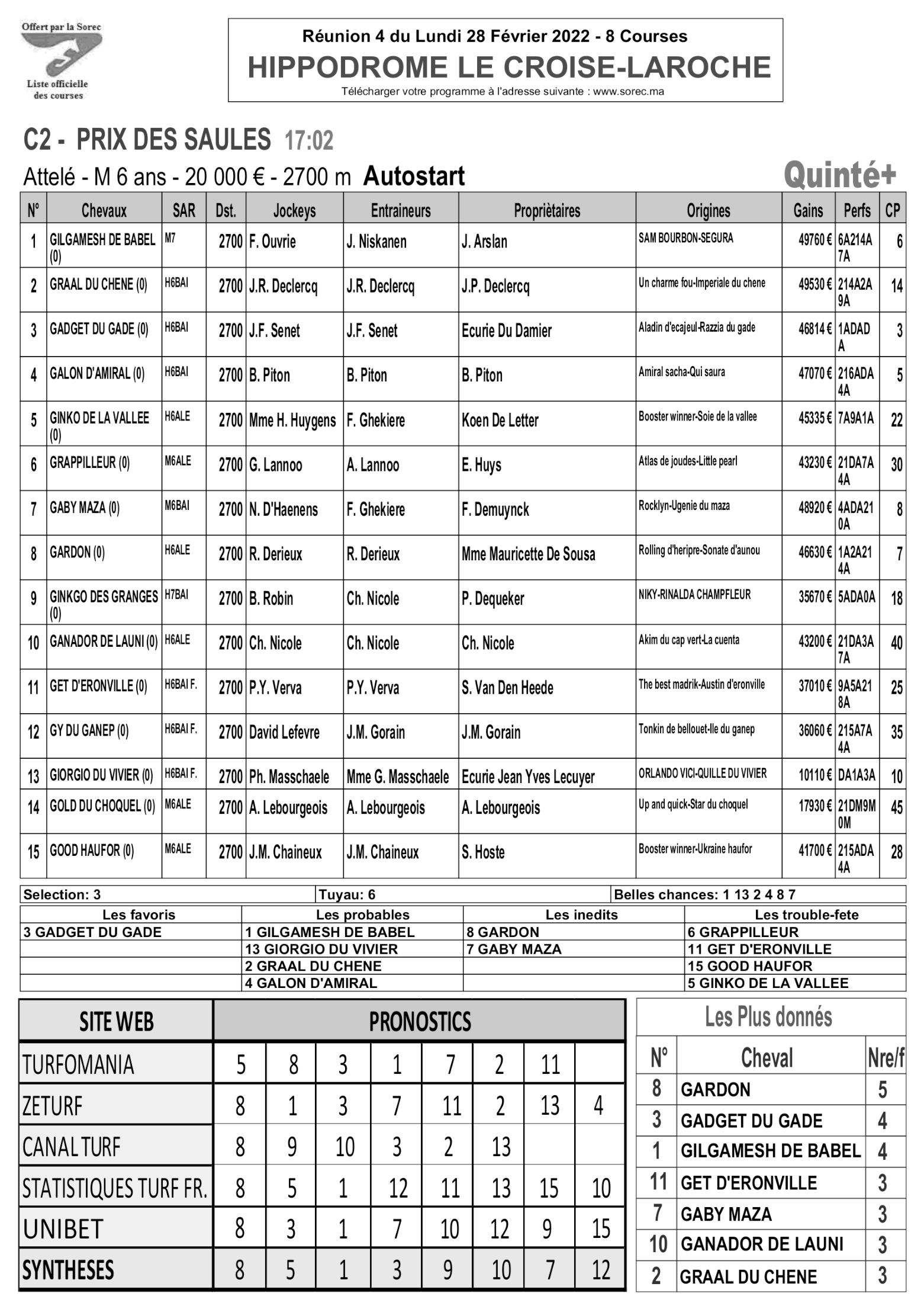 Pronostics & Arrivées