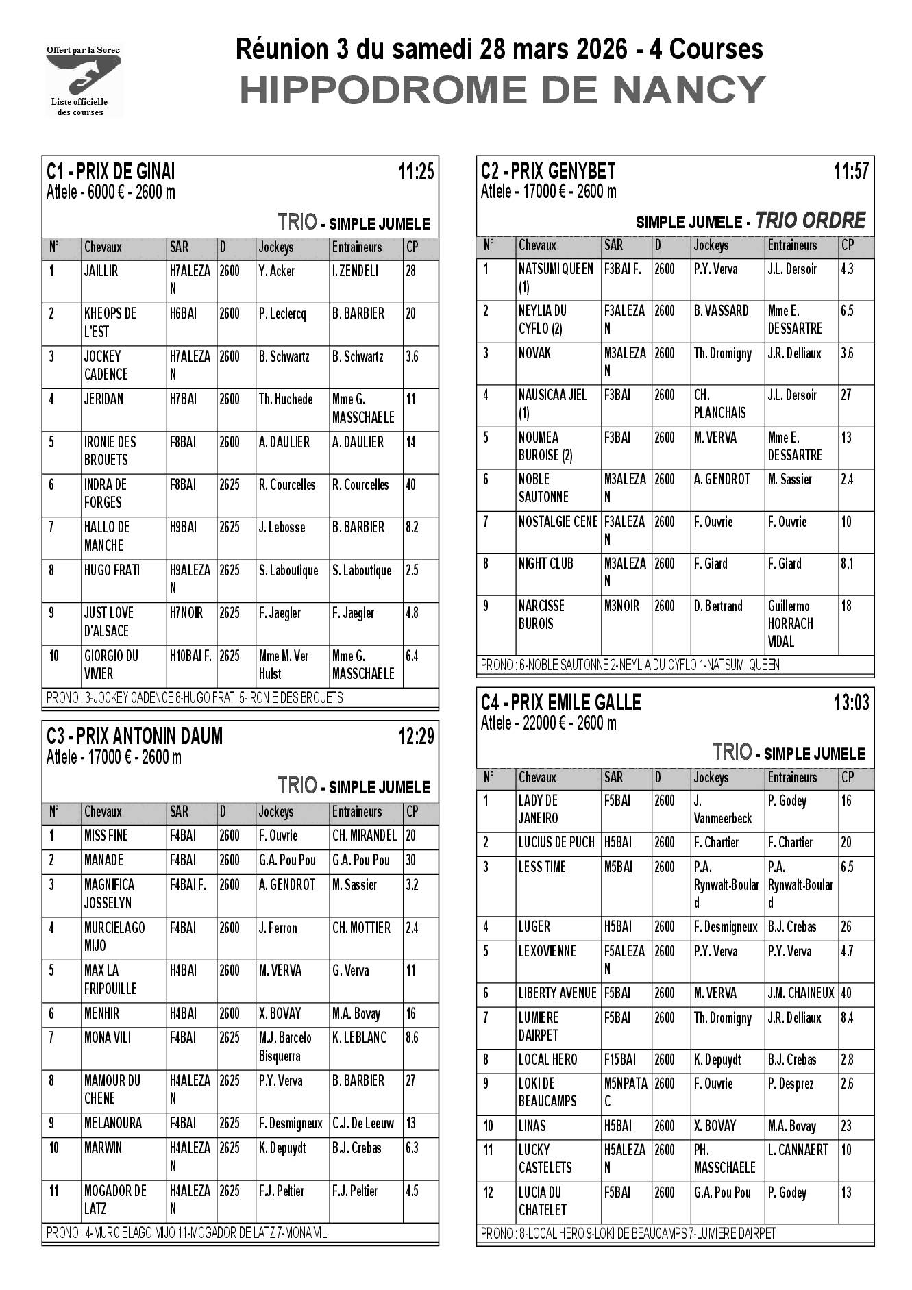 Pronostics & Arrivées