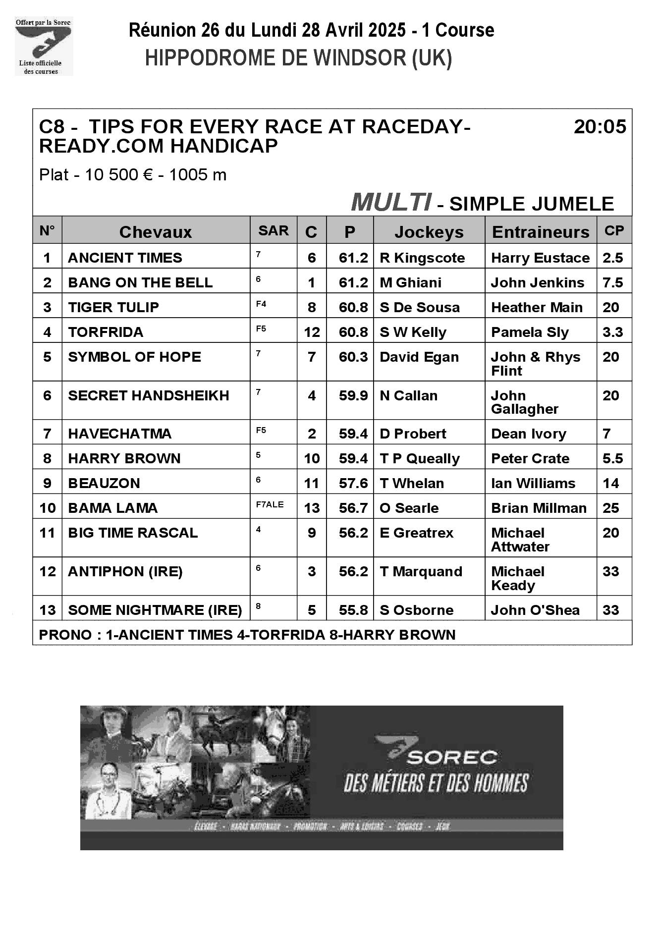 Pronostics & Arrivées