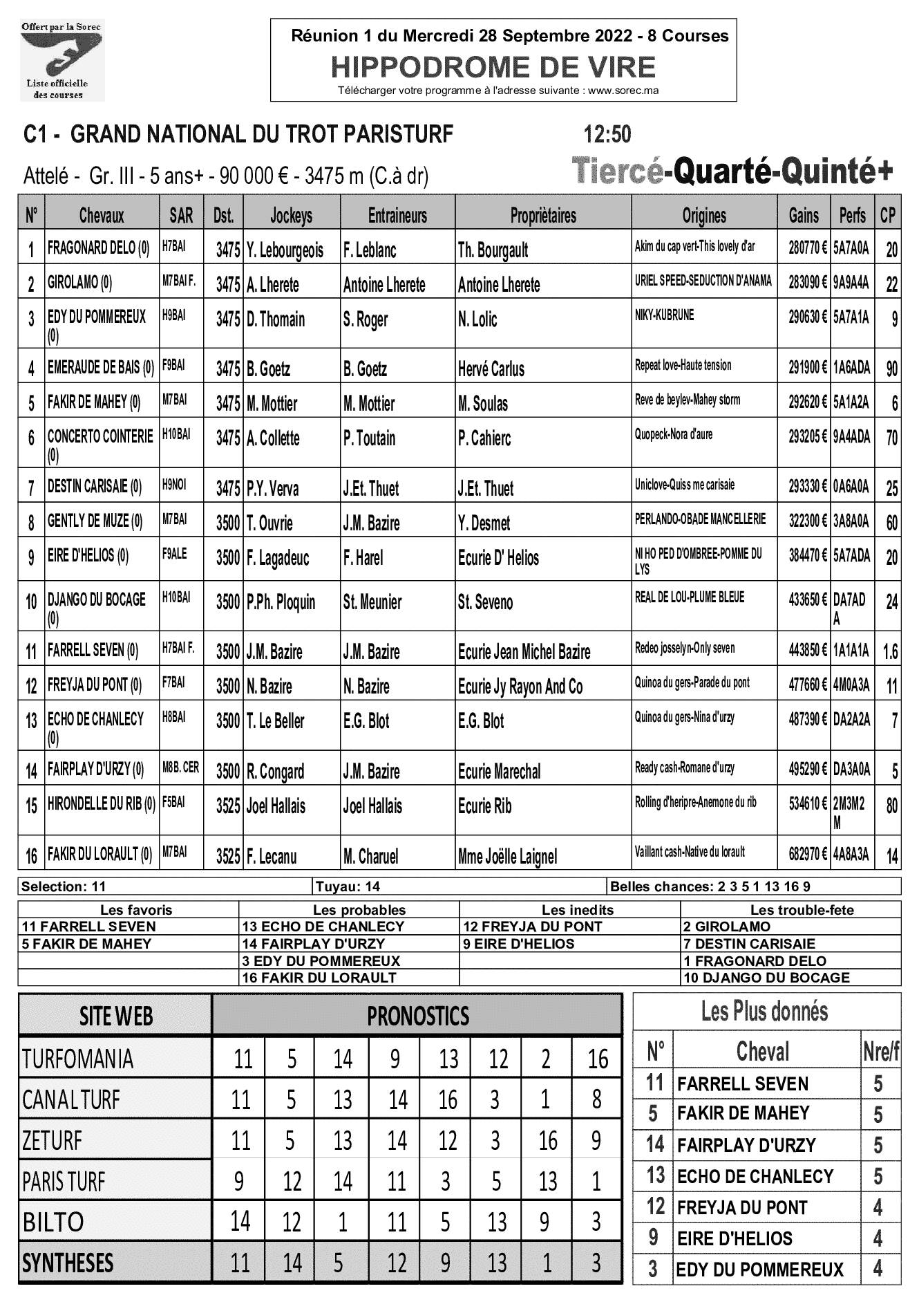 Pronostics & Arrivées