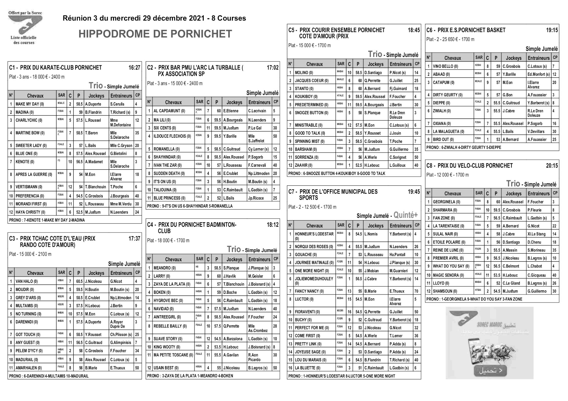 Pronostics & Arrivées