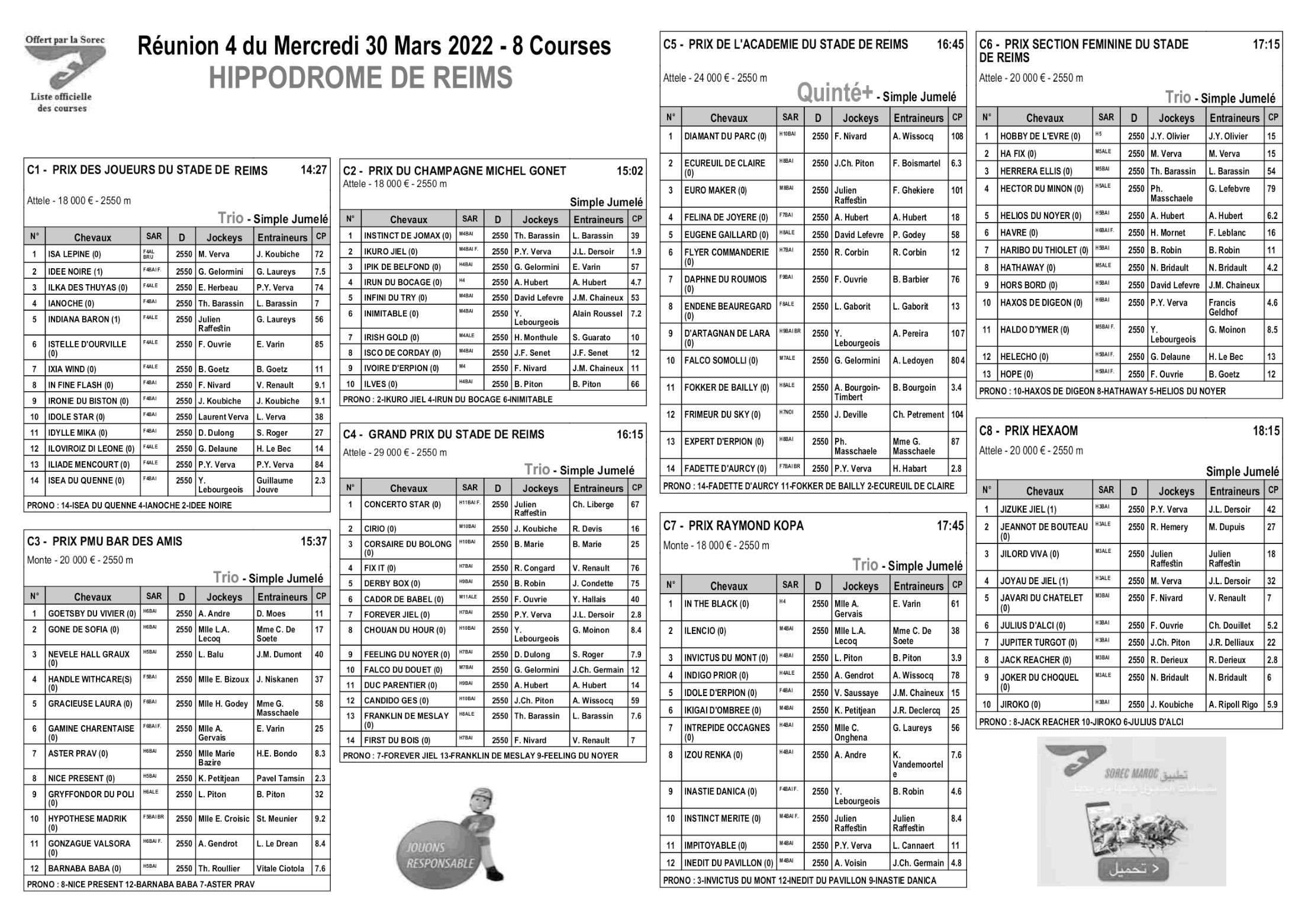 Pronostics & Arrivées